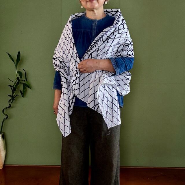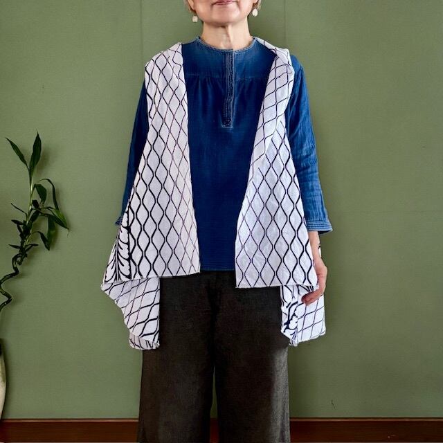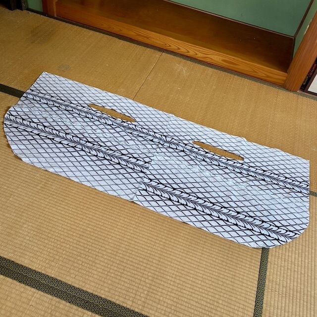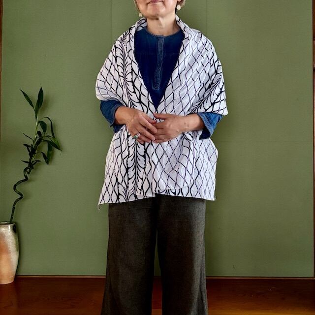 白地に藍色で染められた浴衣生地を使いました。