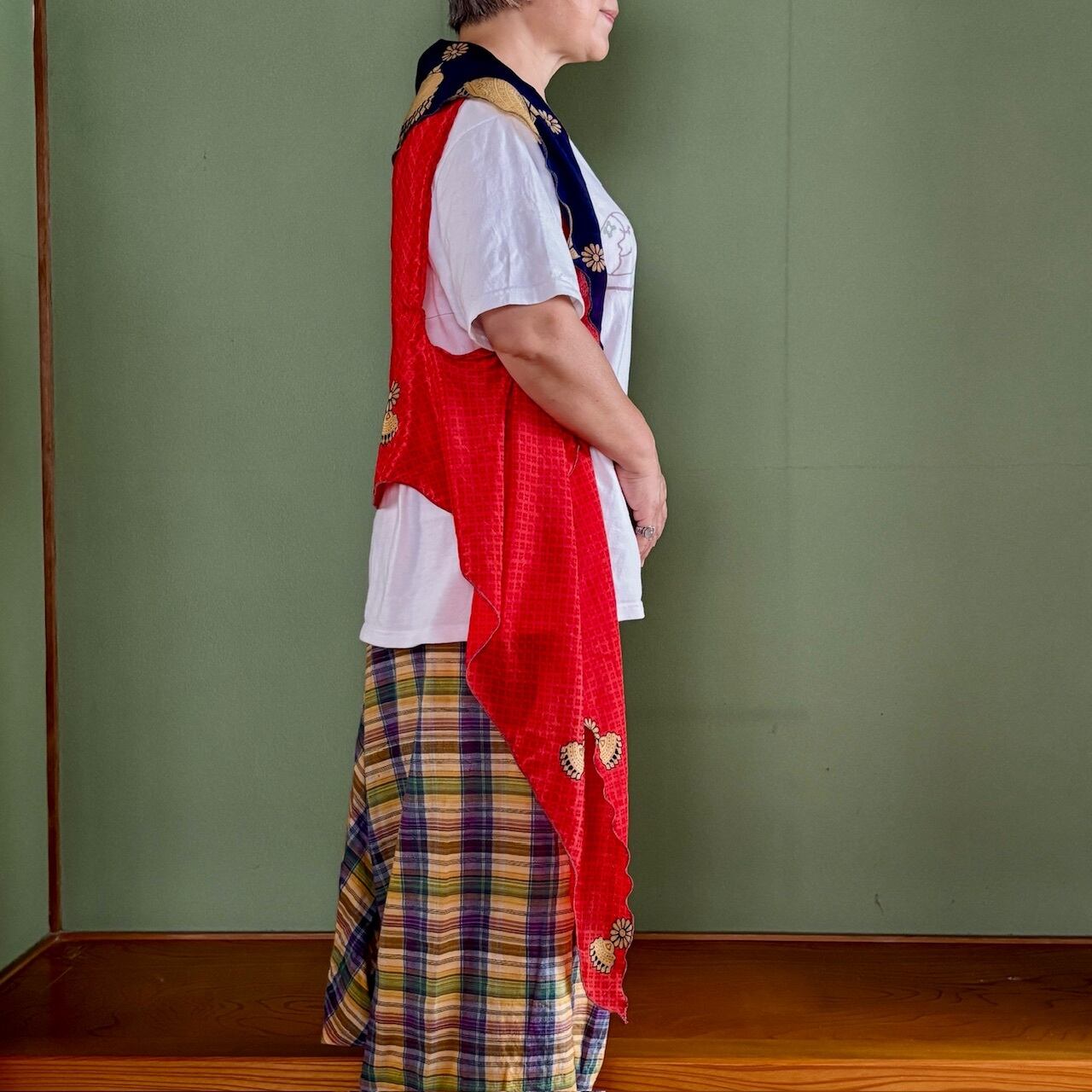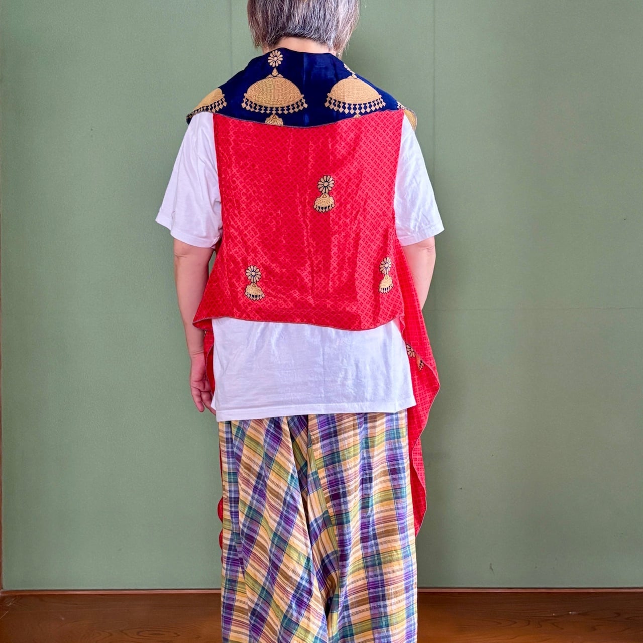 サリー生地をリメイクして、三日月のようなオリジナルショール&アウター「月読」を仕立てました。