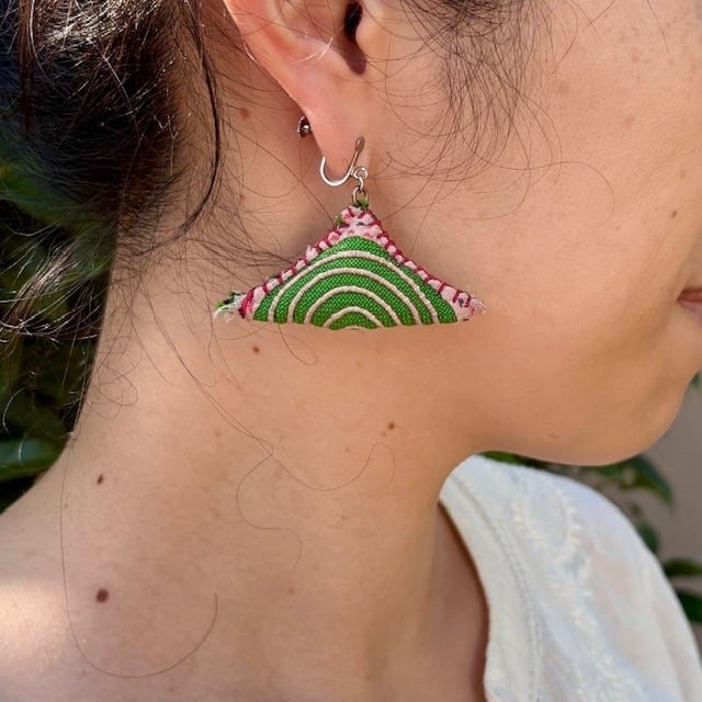 モン族の民族衣装の古布を使ったイヤーアクセサリーです。