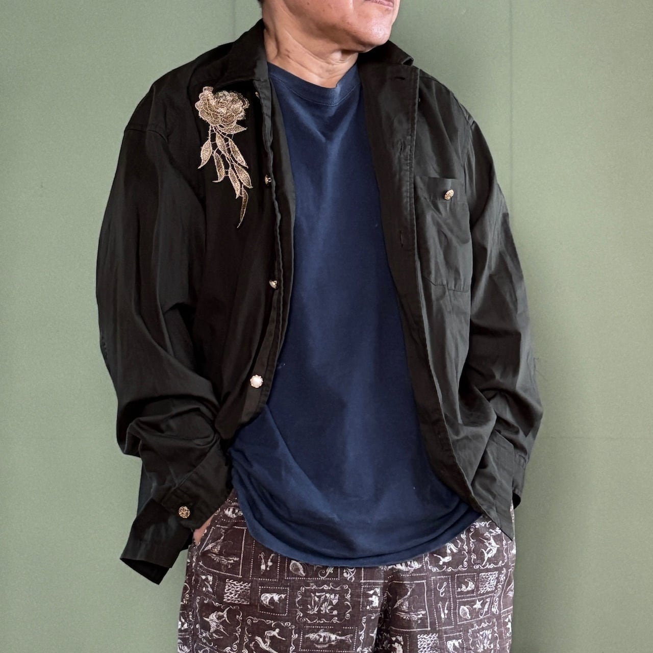 ベースとなるシャツはメンズ用の仕立てですが、女性がざっくり着てもいい感じですよ。