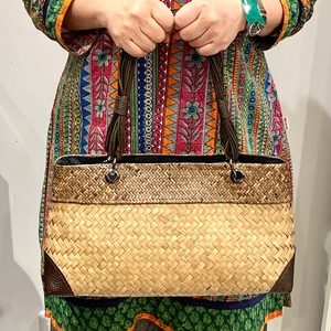 タイ北部・チェンマイで作られているバスケットバッグです。技術ある少数民族の女性職人の手で丁寧に編まれ、丈夫に縫製されています。