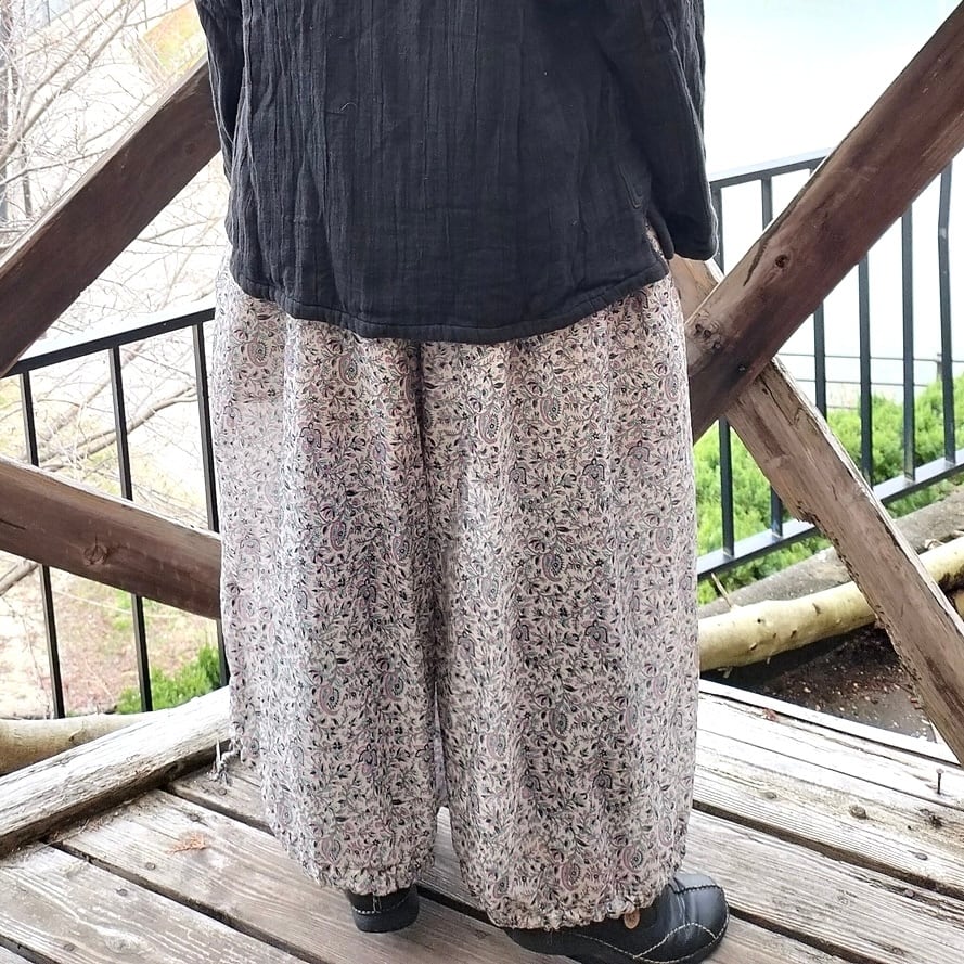 ネパリパンツの生地はそのまま、巻きパンツではなくすっぽりと履ける、ゆったりスタイルのワイドパンツに仕立てました。