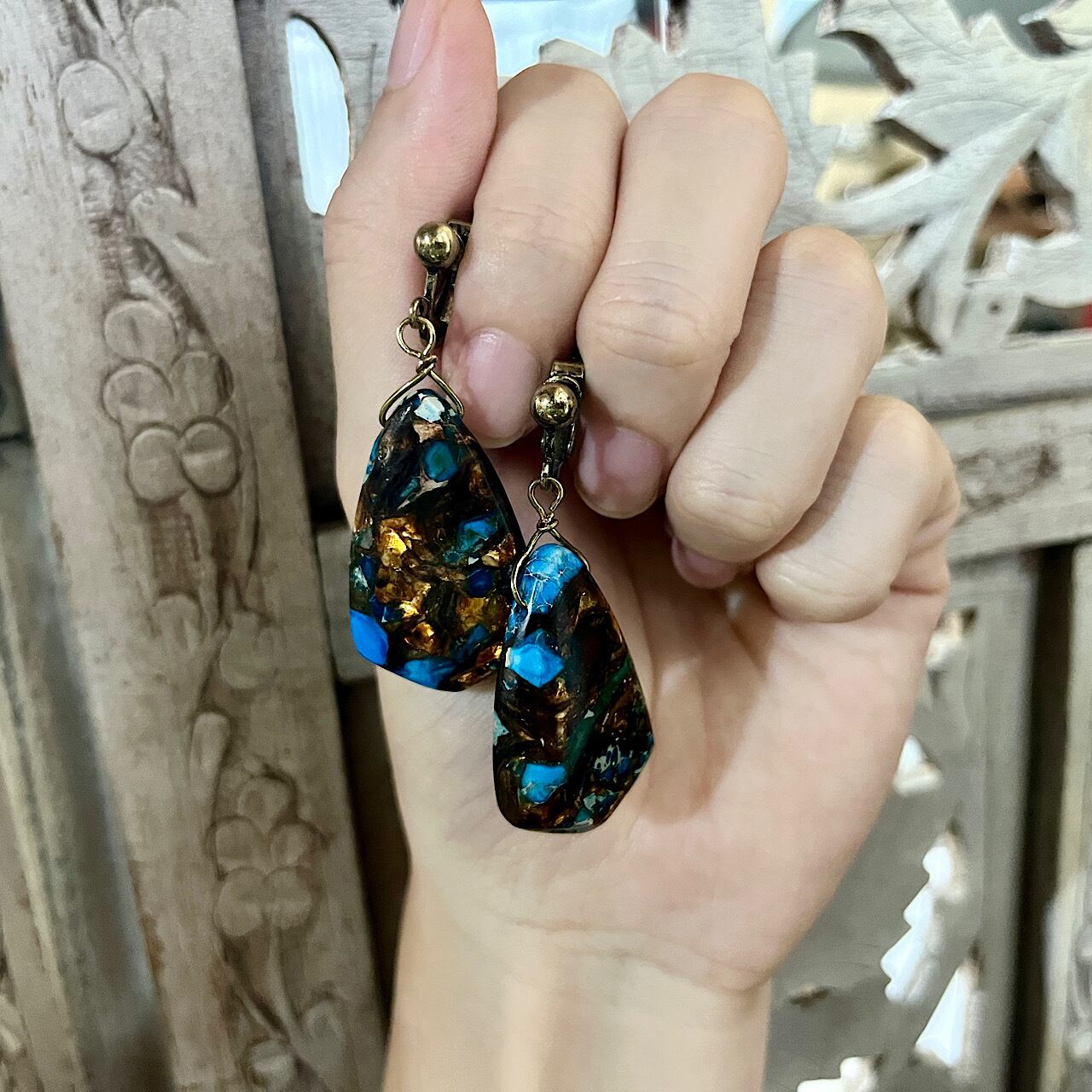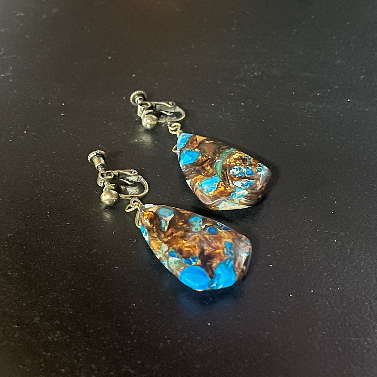 天然石ではありませんが、ターコイズ・タイガーアイ・サンドストーンなどを思わせる色合いです。