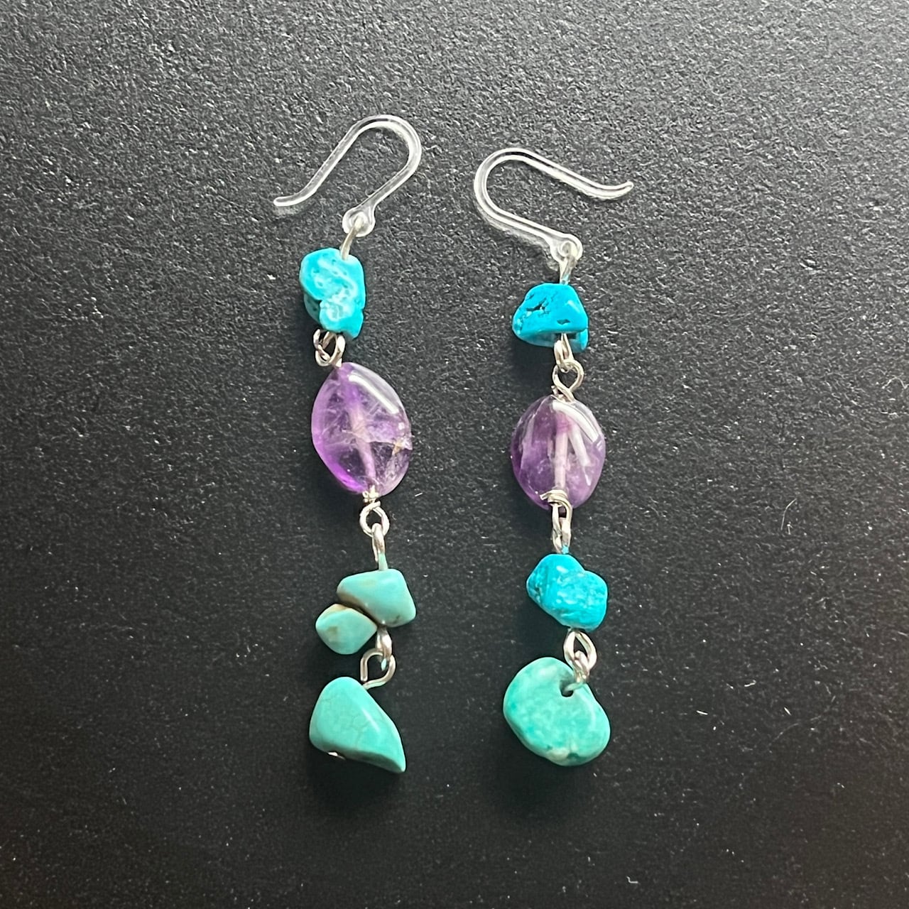 涼しげな色のターコイズとアメジストを合わせたイヤアクセサリーです。